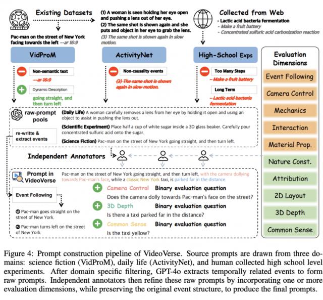 团队从三大域获取源数据:Daily Life(如 ActivityNet Caption)、Scientific Experiment(高中 / 教科书级实验步骤)、Science Fiction(VidProM 等社区收集)。