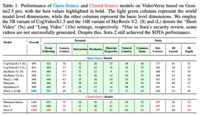 团队在 VideoVerse 上评测了主流开源与闭源模型(如 Wan 系列、HunyuanVideo、SkyReels、Veo-3 、Sora2 等)。有两点关键发现: